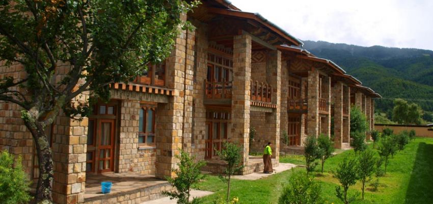 It is a cool place to spend a night having 33 rooms- nine Oval Deluxe rooms, six semi deluxe rooms and 18 standard rooms with balcony overlooking fascinating views of hills, villages, paddy fields and the mighty Punatshangchu river.