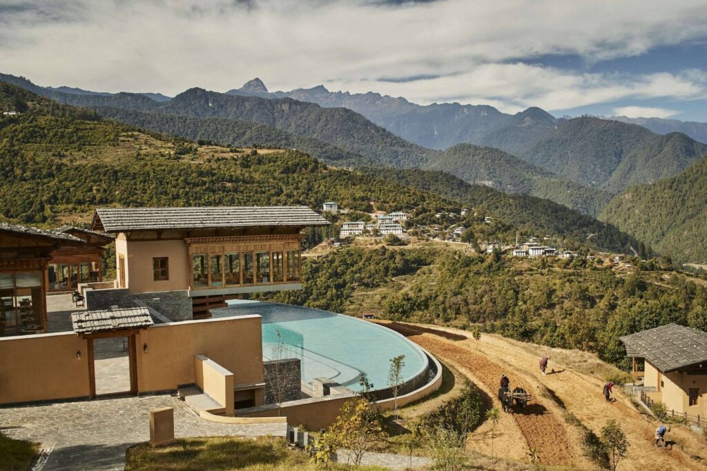 Nestled in the serene Neyphu Valley, the Bhutan Spirit Sanctuary, a Member of Small Luxury Hotels of the World, offers an escape to tranquillity. The hotel’s minimalist design, inspired by traditional dzong architecture, complements the vibrant greens and misty blues of the valley. Guests can unwind in the infinity pool, practice yoga, or indulge in traditional Bhutanese spa treatments.